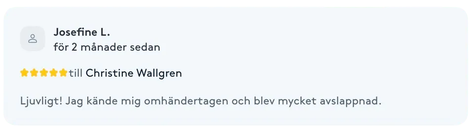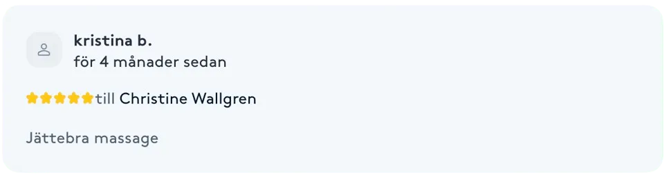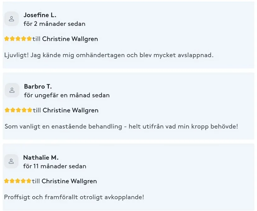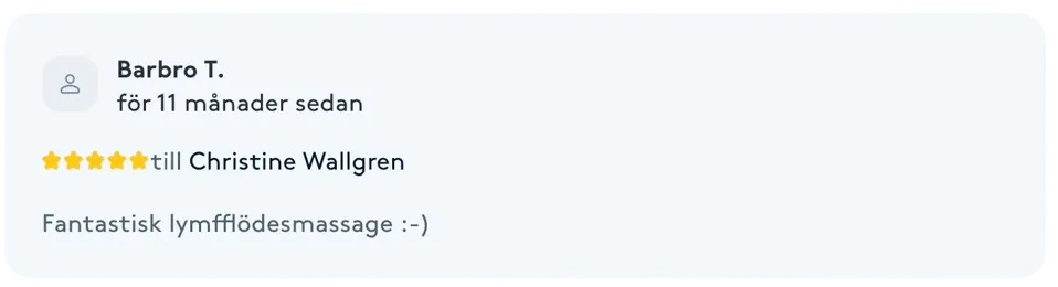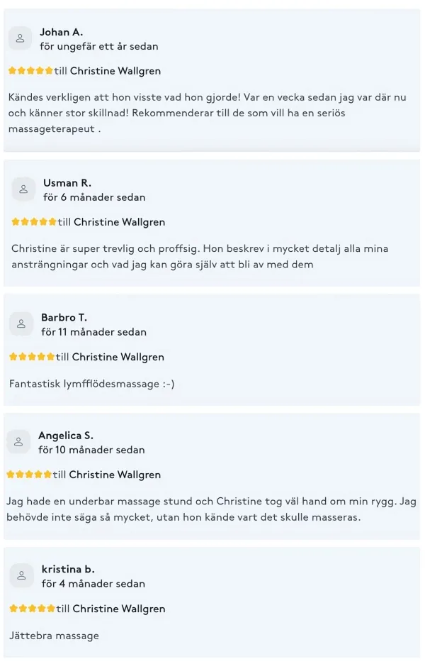 Hej! Christine Wallgren heter jag och är diplomerad medicinsk massageterapeut med vidareutbildning i bland annat lymfmassage, bindvävsmassage och lymfflödesmassage med medicinsk laser.